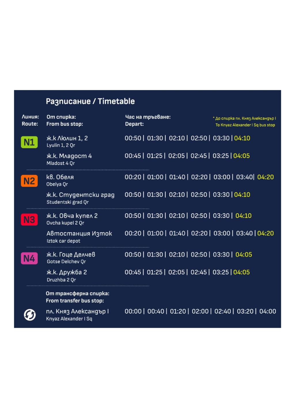 Разписание на нощния транспорт Офлайн Карта (PDF)