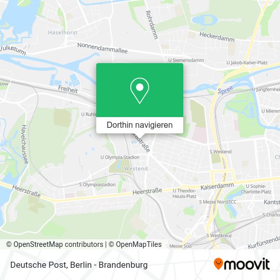 Der nächstgelegene Bahn station zu Deutsche Post in Westend ist S Heerstr.. Es ist ein 18 min Fußweg entfernt.