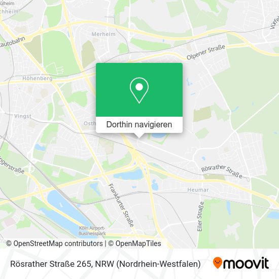 Wir erleichtern dir den Weg zu Rösrather Straße 265, deswegen, halten mehr als 1.5 Millionen Nutzer, einschließlich Nutzern in Köln, Moovit für die beste App für öffentliche Verkehrsmittel. Du musst keine individuelle Bus-App oder Bahn-App herunterladen. Moovit ist deine All-in-One-App, mit der du die beste verfügbare Bus- oder Zugzeit finden.