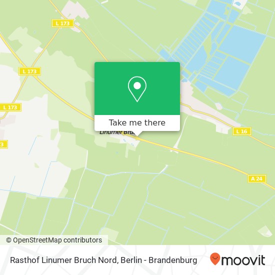 Wir erleichtern dir den Weg zu Rasthof Linumer Bruch Nord, deswegen, halten mehr als 1.5 Millionen Nutzer, einschließlich Nutzern in Ostprignitz-Ruppin, Moovit für die beste App für öffentliche Verkehrsmittel. Du musst keine individuelle Bus-App oder Bahn-App herunterladen. Moovit ist deine All-in-One-App, mit der du die beste verfügbare Bus- oder Zugzeit finden.