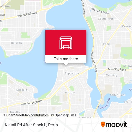 Looking for the nearest stops closest to Kintail Rd After Stack L ? Check out this list of closest stops to your destination: Canning Hwy After Gairloch St; Kintail Rd Before Forbes Rd; Ferry Route Mends St Jetty.