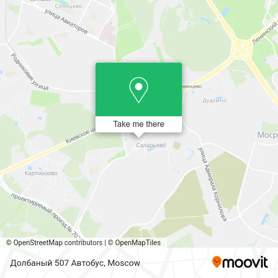 The nearest shuttle station to Долбаный 507 Автобус in Московский is Саларьево. It’s a 16 min walk away.