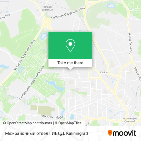 Wondering how to get to Межрайонный отдел ГИБДД in Kaliningrad? Moovit helps you find the best way to get to Межрайонный отдел ГИБДД with step-by-step directions from the nearest public transit station.