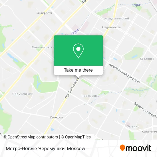 Wondering how to get to Метро-Новые Черёмушки? Moovit helps you find the best way to get to Метро-Новые Черёмушки with step-by-step directions from the nearest public transit station.