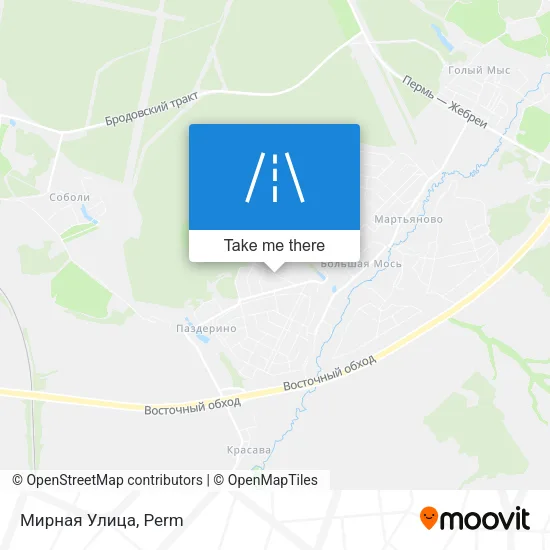 It’s easy with Moovit. Type in your street address and Moovit’s route finder will locate the fastest way to get you there! Not sure where to get off on the street? Download the Moovit App to find live directions (including where to get off on Мирная Улица), see timetables and get the estimated arrival times for your favorite bus or tram lines.