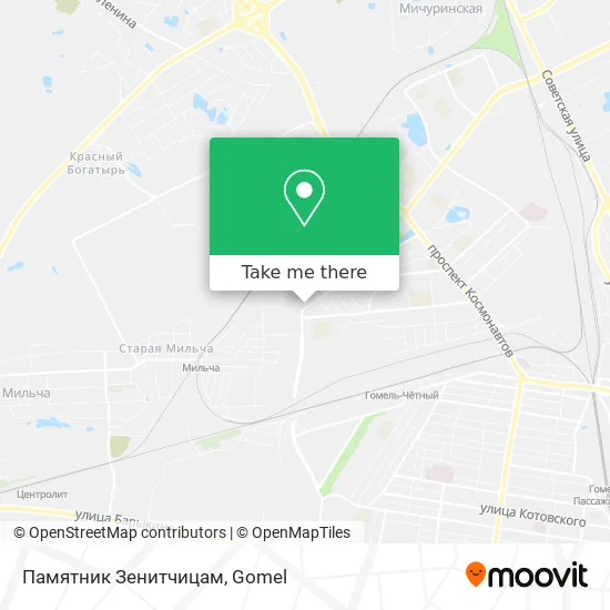 Directions to Памятник Зенитчицам (Homyel) with public transportation