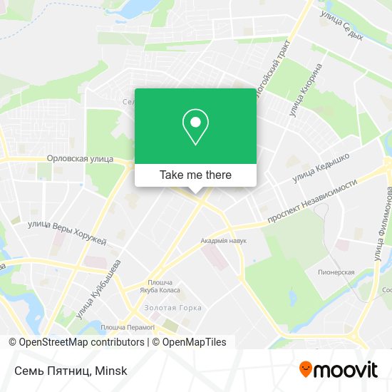 The nearest Trolleybus station to Семь Пятниц in Советский Район is Якуба Коласа. It’s a 1 min walk away.