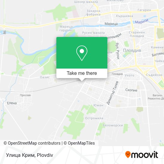 We make riding to Улица Крим easy, which is why over 1.5 million users, including users in Plovdiv, trust Moovit as the best app for public transit. You don’t need to download an individual bus app or train app, Moovit is your all-in-one transit app that helps you find the best bus time or train time available.