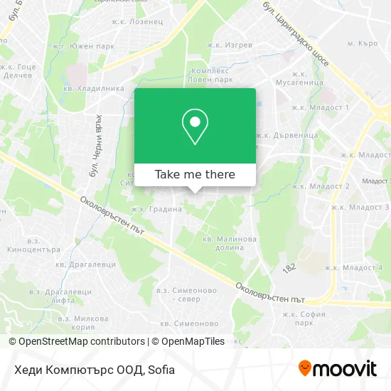 We make riding to Хеди Компютърс ООД easy, which is why over 1.5 million users, including users in Малинова Долина, trust Moovit as the best app for public transit. You don’t need to download an individual bus app or train app, Moovit is your all-in-one transit app that helps you find the best bus time or train time available.