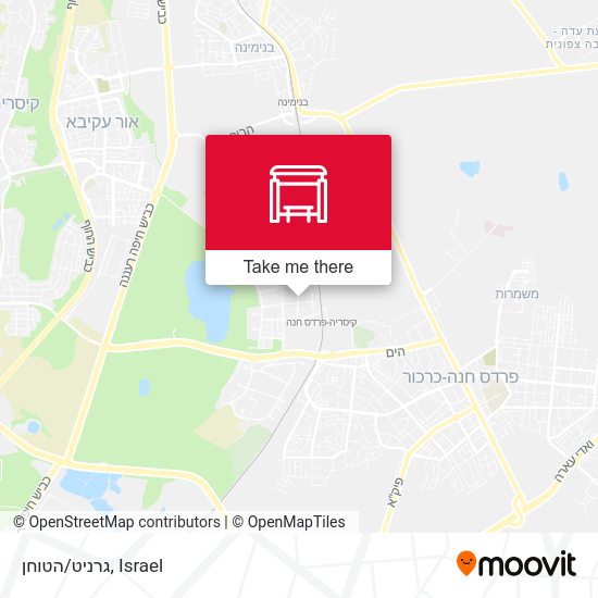 The nearest bus station to גרניט/הטוחן in קיסריה is גרניט/הטוחן. It’s a 2 min walk away.