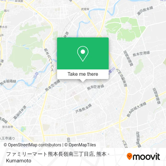 Wondering how to get to ファミリーマート熊本長嶺南三丁目店 in 熊本 - Kumamoto? Moovit helps you find the best way to get to ファミリーマート熊本長嶺南三丁目店 with step-by-step directions from the nearest public transit station.