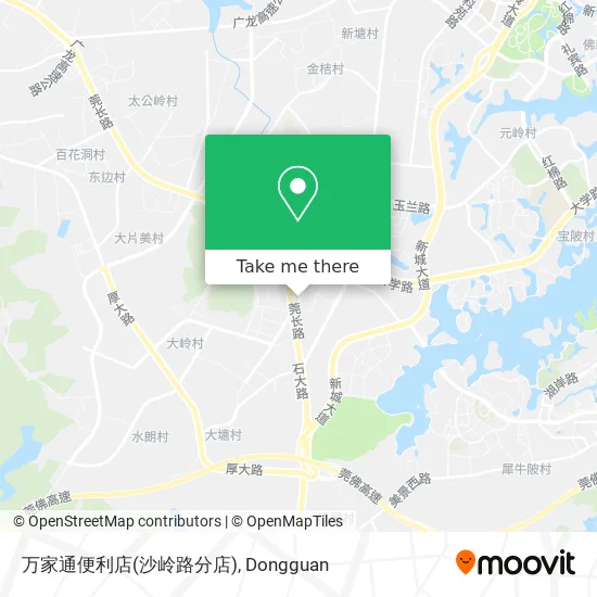 We make riding to 万家通便利店(沙岭路分店) easy, which is why over 1.5 million users, including users in 东莞市, trust Moovit as the best app for public transit. You don’t need to download an individual bus app or train app, Moovit is your all-in-one transit app that helps you find the best bus time or train time available.
