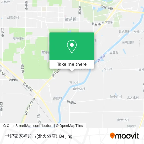 For information on prices of bus and metro, costs and ride fares to 世纪家家福超市(北火垡店), please check the Moovit app.