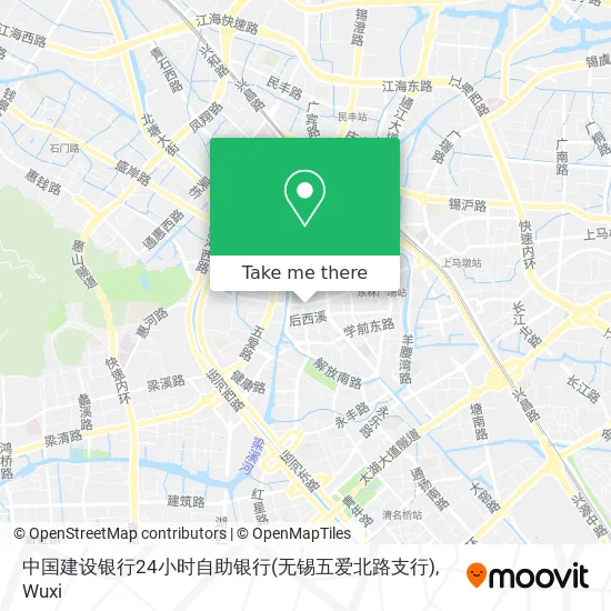 Wondering how to get to 中国建设银行24小时自助银行(无锡五爱北路支行) in 梁溪区? Moovit helps you find the best way to get to 中国建设银行24小时自助银行(无锡五爱北路支行) with step-by-step directions from the nearest public transit station.