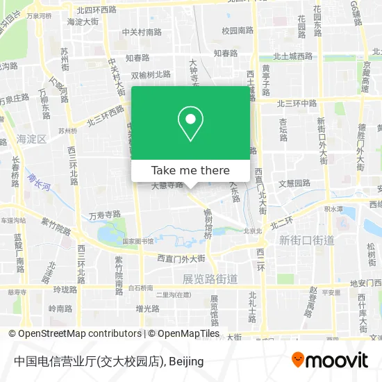 中国电信营业厅(交大校园店) Address: 北京市海淀区西直门外上园村3号北京交通大学 street in 北下关街道