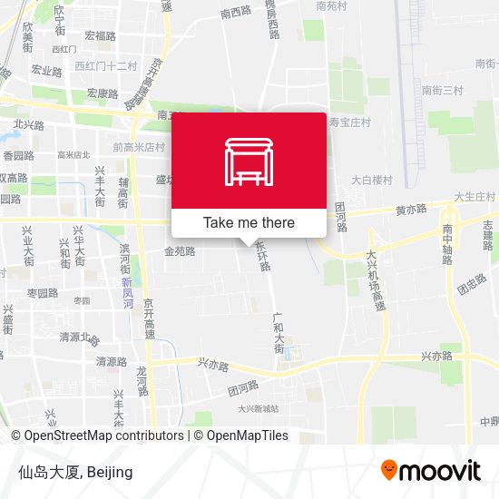 Looking for the nearest stops closest to 仙岛大厦 ? Check out this list of closest stops to your destination: 警官大学西; 塞尔制药厂; 福苑东区; 广阳大街; 高米店南 Gaomidian Nan(S); 大兴新城 Daxing Xincheng.