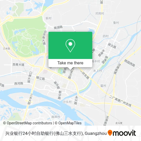 Wondering how to get to 兴业银行24小时自助银行(佛山三水支行) in 三水区? Moovit helps you find the best way to get to 兴业银行24小时自助银行(佛山三水支行) with step-by-step directions from the nearest public transit station.