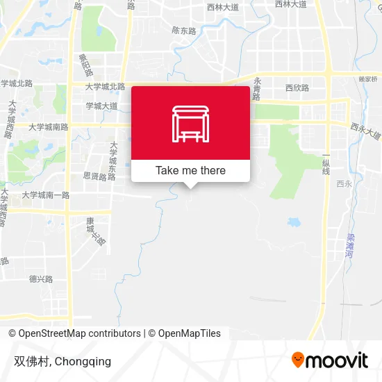 The nearest bus station to 双佛村 in 沙坪坝区 is 双佛村. It’s a 1 min walk away.