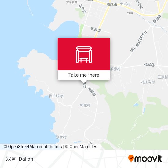 The nearest bus station to 双沟 in 旅顺口区 is 双沟. It’s a 1 min walk away.