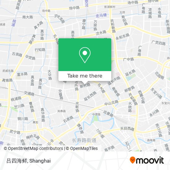 Looking for the nearest stop or station to 吕四海鲜? Check out this list of stops closest to your destination: 新村路子长路; 大华三路 Dahuasan Road; 志丹路新村路; 甘泉新村; 新村路志丹路; 沪太路宜川路; 中潭路 Zhongtan Road; 延长路 Yanchang Road.