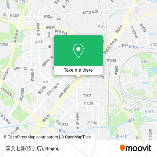 Wondering how to get to 国美电器(望京店) in 酒仙桥街道? Moovit helps you find the best way to get to 国美电器(望京店) with step-by-step directions from the nearest public transit station.