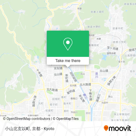 Looking for the nearest stop or station to 小山北玄以町? Check out this list of stops closest to your destination: 上賀茂橋; 下岸町; 東元町; 北大路.