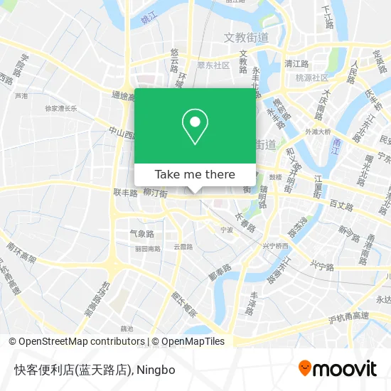 We make riding to 快客便利店(蓝天路店) easy, which is why over 1.5 million users, including users in 海曙区, trust Moovit as the best app for public transit. You don’t need to download an individual bus app or train app, Moovit is your all-in-one transit app that helps you find the best bus time or train time available.