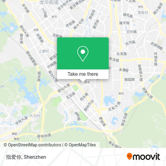 The nearest metro station to 指爱你 in 龙华镇 is 民治. It’s a 17 min walk away.