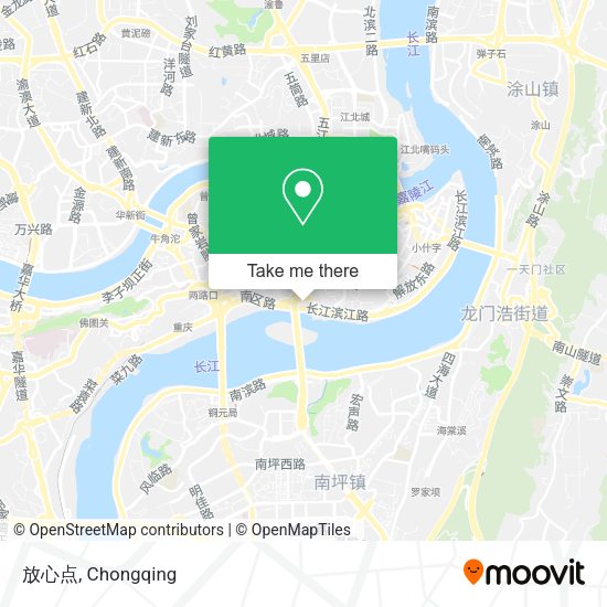 We make riding to 放心点 easy, which is why over 1.5 million users, including users in 渝中区, trust Moovit as the best app for public transit. You don’t need to download an individual bus app or train app, Moovit is your all-in-one transit app that helps you find the best bus time or train time available.