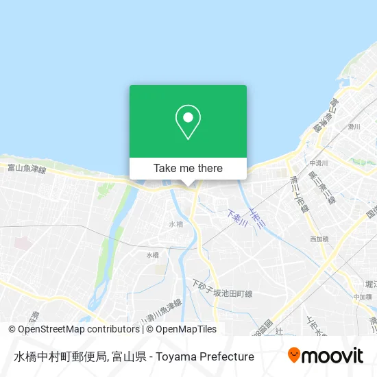 Wondering how to get to 水橋中村町郵便局 in 富山県 - Toyama Prefecture? Moovit helps you find the best way to get to 水橋中村町郵便局 with step-by-step directions from the nearest public transit station.