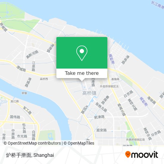 The nearest metro station to 炉桥手擀面 in 高桥镇 is 航津路 Hangjin Road. It’s a 18 min walk away.