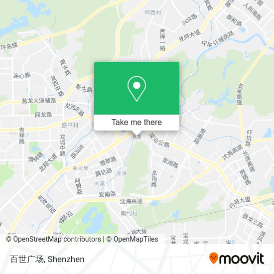 We make riding to 百世广场 easy, which is why over 1.5 million users, including users in 龙岗镇, trust Moovit as the best app for public transit. You don’t need to download an individual bus app or train app, Moovit is your all-in-one transit app that helps you find the best bus time or train time available.