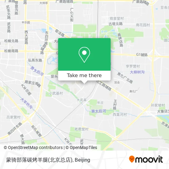 For information on prices of bus and metro, costs and ride fares to 蒙骑部落碳烤羊腿(北京总店), please check the Moovit app.