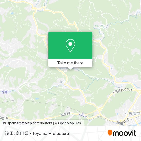 When traveling to any destination around Toyama Prefecture use Moovit's Live Directions with Get Off Notifications to know exactly where and how far to walk, how long to wait for your line, and how many stops are left. Moovit will alert you when it's time to get off — no need to constantly re-check whether yours is the next stop.