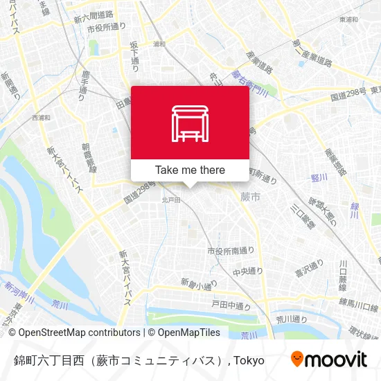 We make riding on public transit to 錦町六丁目西(蕨市コミュニティバス) easy, which is why over 1.5 million users, including users in 戸田市 trust Moovit as the best app for public transit.