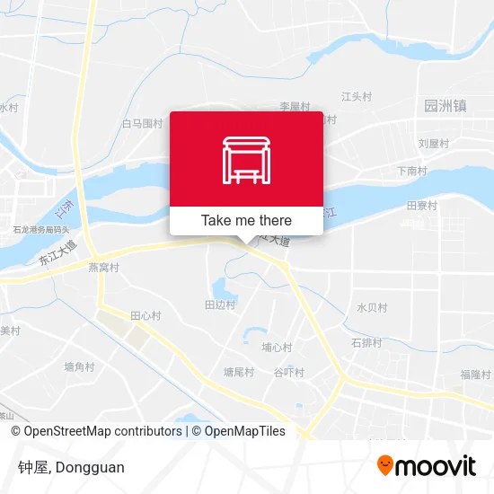 The nearest bus station to 钟屋 in 东莞市 is 钟屋. It’s a 1 min walk away.