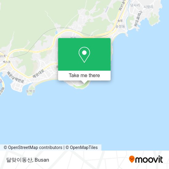 Looking for the nearest stop or station to 달맞이동산? Check out this list of stops closest to your destination: 장산; 상록아파트; Sk View아파트; 동백초등학교; 동백중학교.