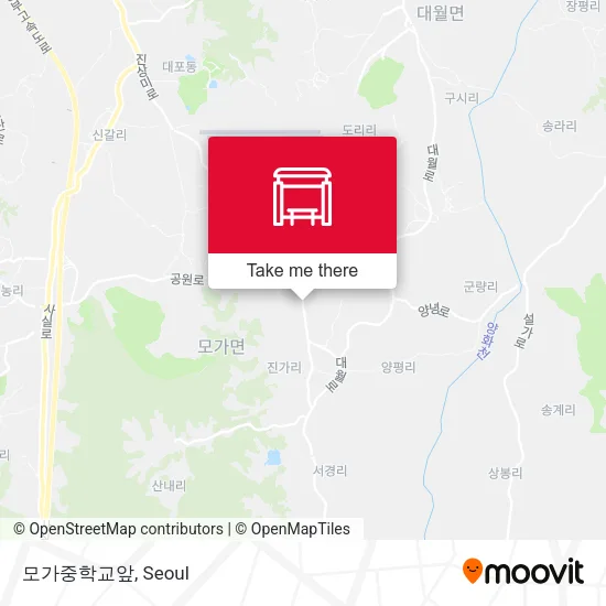 Directions to 모가중학교앞 stop (이천시, 경기도) with public transit
