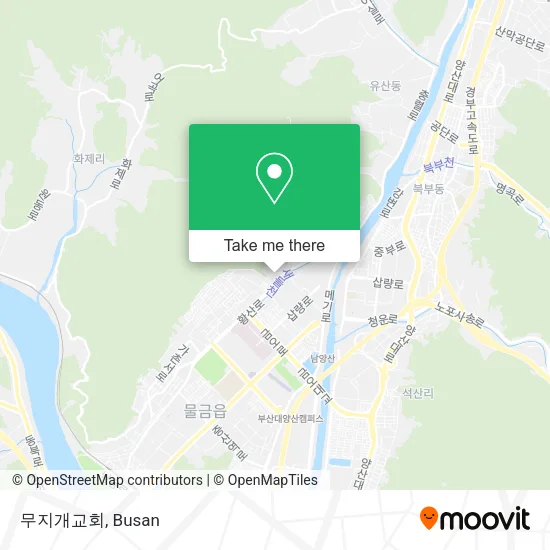 We make riding to 무지개교회 easy, which is why over 1.5 million users, including users in 양산시, trust Moovit as the best app for public transit. You don’t need to download an individual bus app or train app, Moovit is your all-in-one transit app that helps you find the best bus time or train time available.
