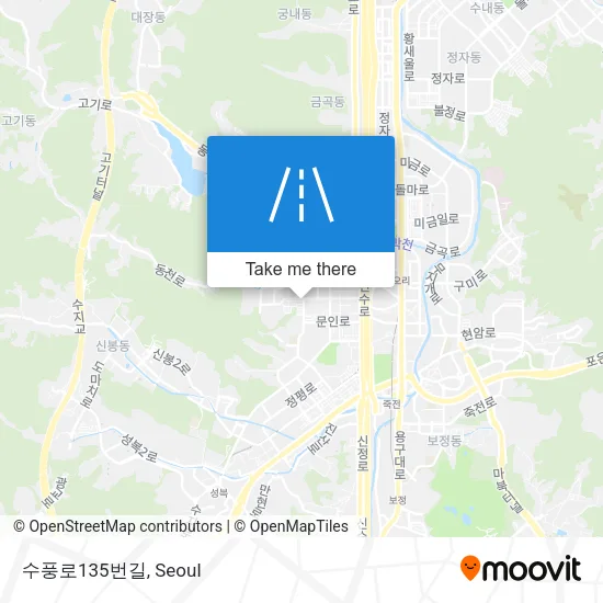 It’s easy with Moovit. Type in your street address and Moovit’s route finder will locate the fastest way to get you there! Not sure where to get off on the street? Download the Moovit App to find live directions (including where to get off on 수풍로135번길), see timetables and get the estimated arrival times for your favorite bus or subway lines.