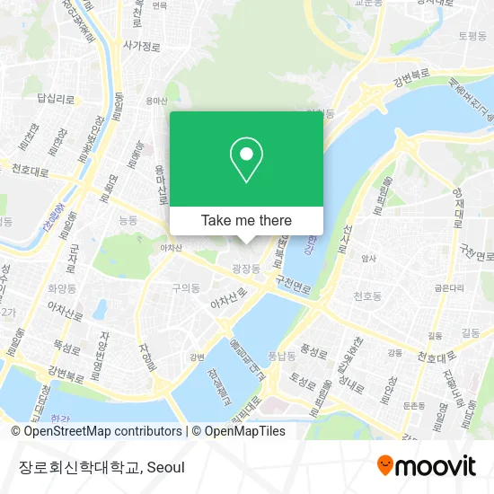We make riding to 장로회신학대학교 easy, which is why over 1.5 million users, including users in 광진구, 서울시, trust Moovit as the best app for public transit. You don’t need to download an individual bus app or train app, Moovit is your all-in-one transit app that helps you find the best bus time or train time available.