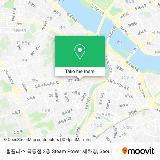 We make riding to 홈플러스 목동점 2층 Steam Power 세차장 easy, which is why over 1.5 million users, including users in 양천구, 서울시, trust Moovit as the best app for public transit. You don’t need to download an individual bus app or train app, Moovit is your all-in-one transit app that helps you find the best bus time or train time available.
