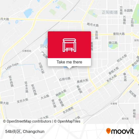 The nearest bus station to 54b街区 in 绿园区 is 54b街区. It’s a 1 min walk away.