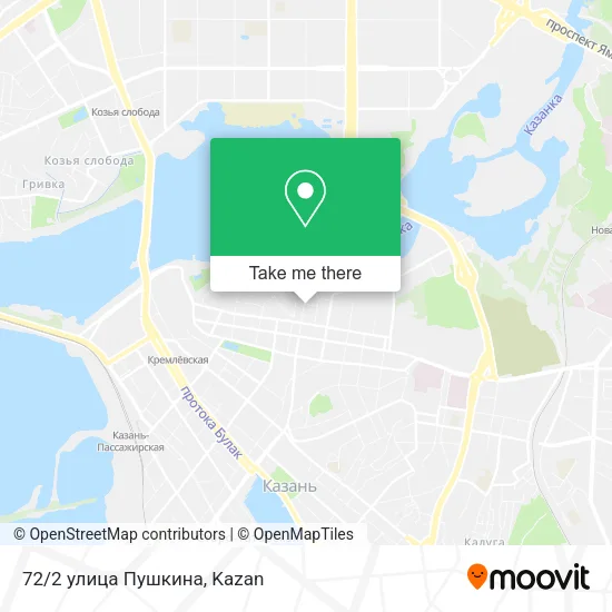 Wondering how to get to 72/2 улица Пушкина in Вахитовский Район? Moovit helps you find the best way to get to 72/2 улица Пушкина with step-by-step directions from the nearest public transit station.