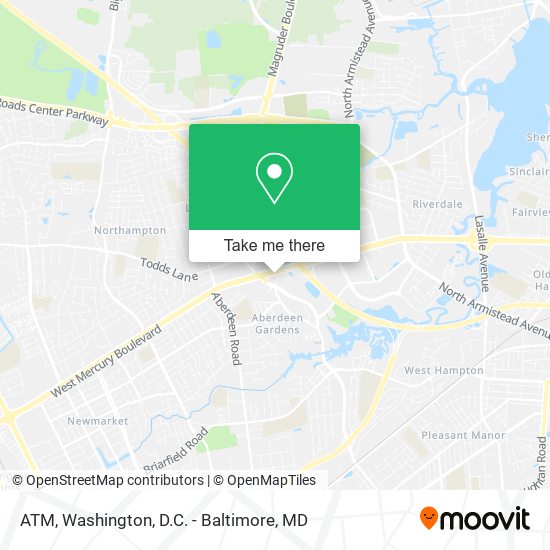 The nearest bus stations to ATM in Hampton are Power Plant & Mercury and Mercury & Todds. The closest one is a 6 min walk away.