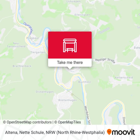 The nearest bus station to Altena, Nette Schule is Altena, Nette Schule. It’s a 1 min walk away.