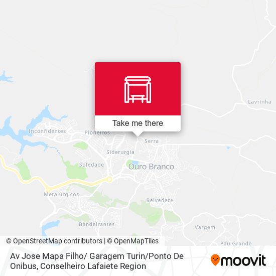 We make riding on public transit to Av Jose Mapa Filho/ Garagem Turin / Ponto De Onibus easy, which is why over 1.5 million users, including users in Ouro Branco trust Moovit as the best app for public transit.