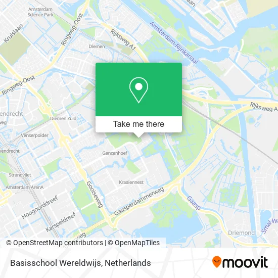 We make riding to Basisschool Wereldwijs easy, which is why over 1.5 million users, including users in Amsterdam, trust Moovit as the best app for public transit. You don’t need to download an individual bus app or train app, Moovit is your all-in-one transit app that helps you find the best bus time or train time available.