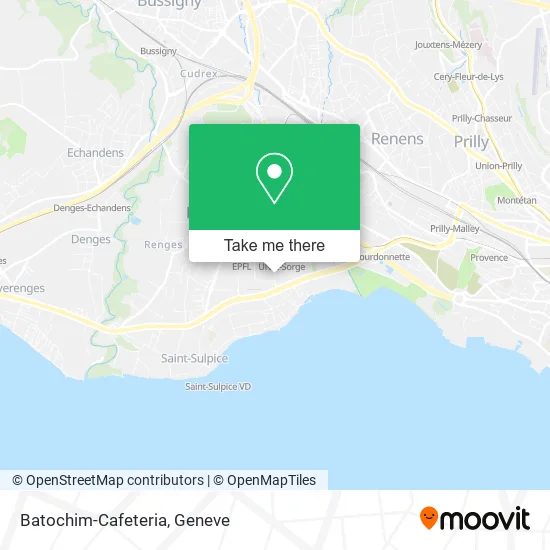 Looking for the nearest stop or station to Batochim-Cafeteria? Check out this list of stops closest to your destination: Ecublens Vd; Ecublens Vd; Ecublens Vd; Ecublens Vd; Ecublens Vd; St-Sulpice Vd (Lac).