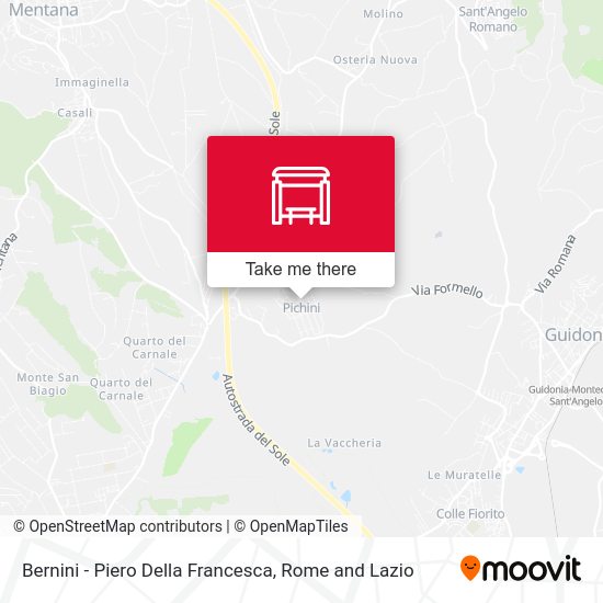 The nearest bus station to Bernini - Piero Della Francesca in Guidonia Montecelio is Bernini - Piero Della Francesca. It’s a 2 min walk away.